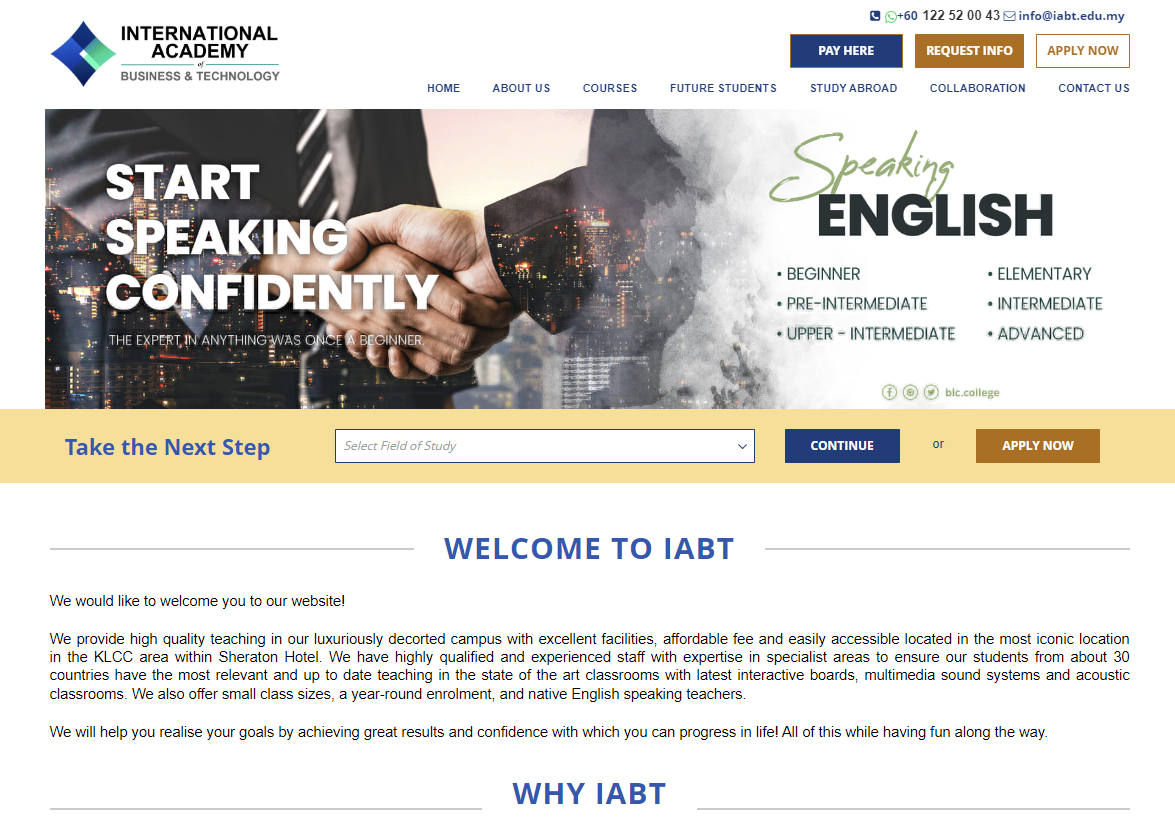 IABT English Academy는 체계적이고 실용적인 영어 교육을 제공하여 말레이시아에서 영어를 배우고자 하는 성인들에게 최고의 선택이 될 것입니다. 지금 바로 등록하시고, 영어 실력을 향상해 보세요!